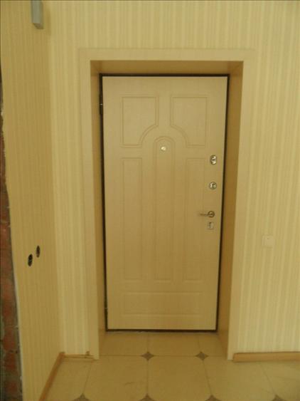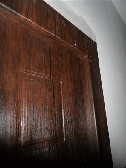 Наклеены МДФ-накладки с двух сторон.Сделаны широкие откосы из МДФ, покрытого пленкой ПВХ.